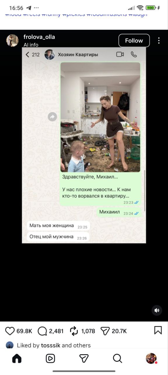 AI-пранки вызывают сильную первую реакцию, удерживают внимание и провоцируют репосты. Instagram усиливает такие форматы, потому что они увеличивают время просмотра и вовлечённость.